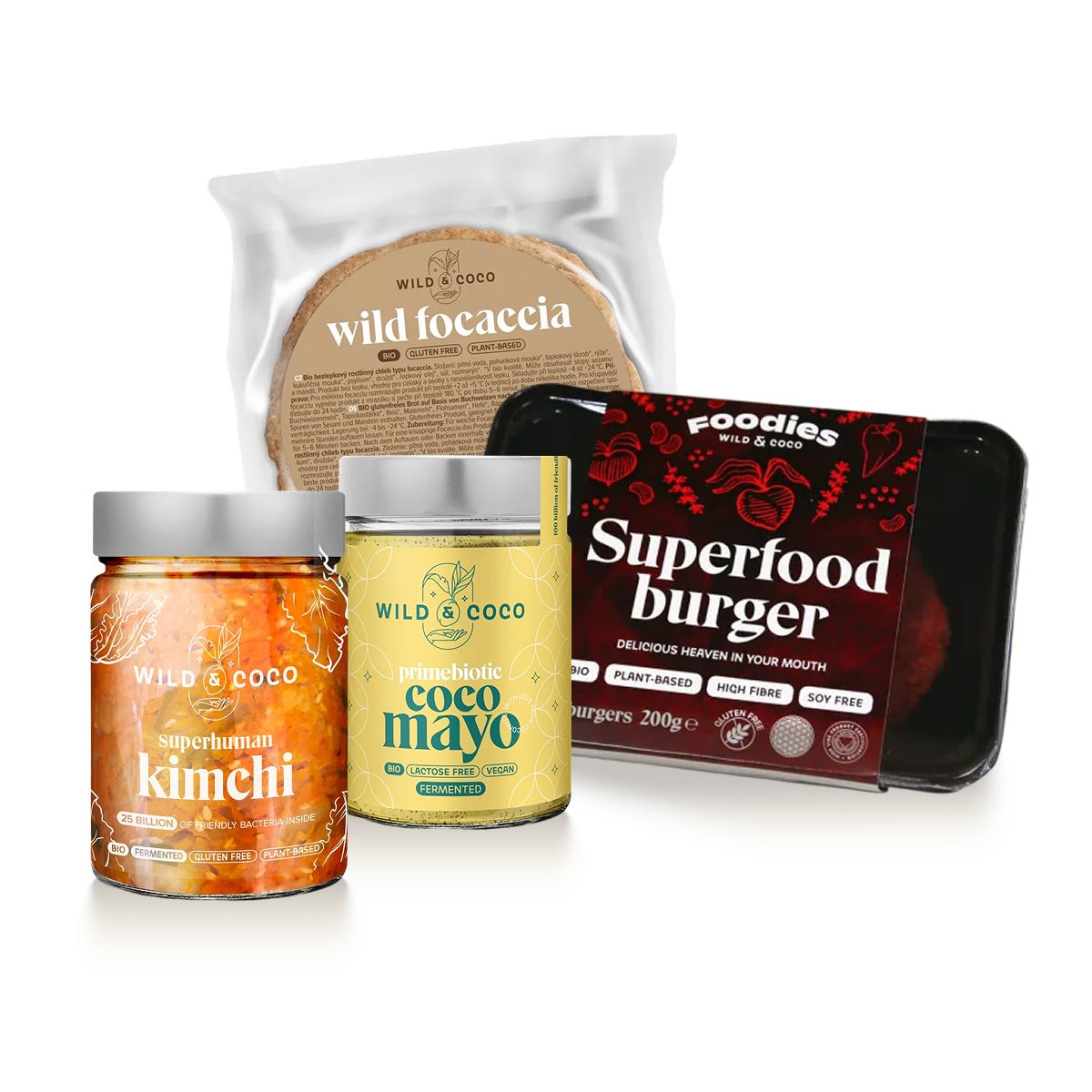 Im Inneren findest Du: Focaccia, Cocomayo, Kimchi und einen Rote-Bete-Burger. Für Abende ohne Kochen, an denen Du „etwas Richtiges“ willst, aber kein schweres Gefühl und Überessen möchtest.